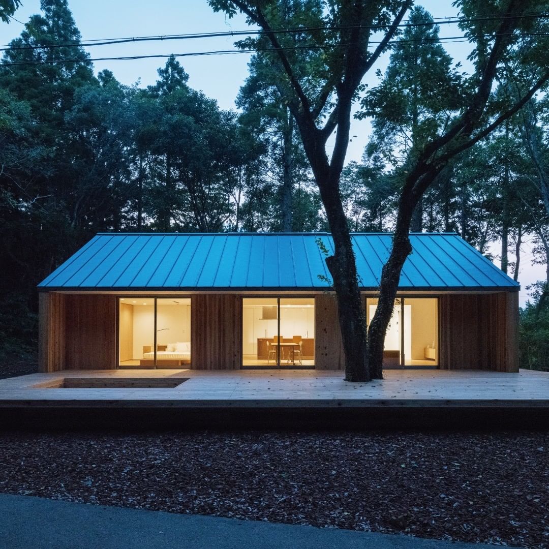 千葉県のグランピング施設「フォレストリビング」施設内にある「陽の家」モデルハウス。森の中での心地よい時間を体感できる自然豊かなロケーションです。森に息づく木々からエネルギーをもらい、小鳥のさえずりに耳をかたむけて、日常とは違うひとときをお過ごしいただけます。