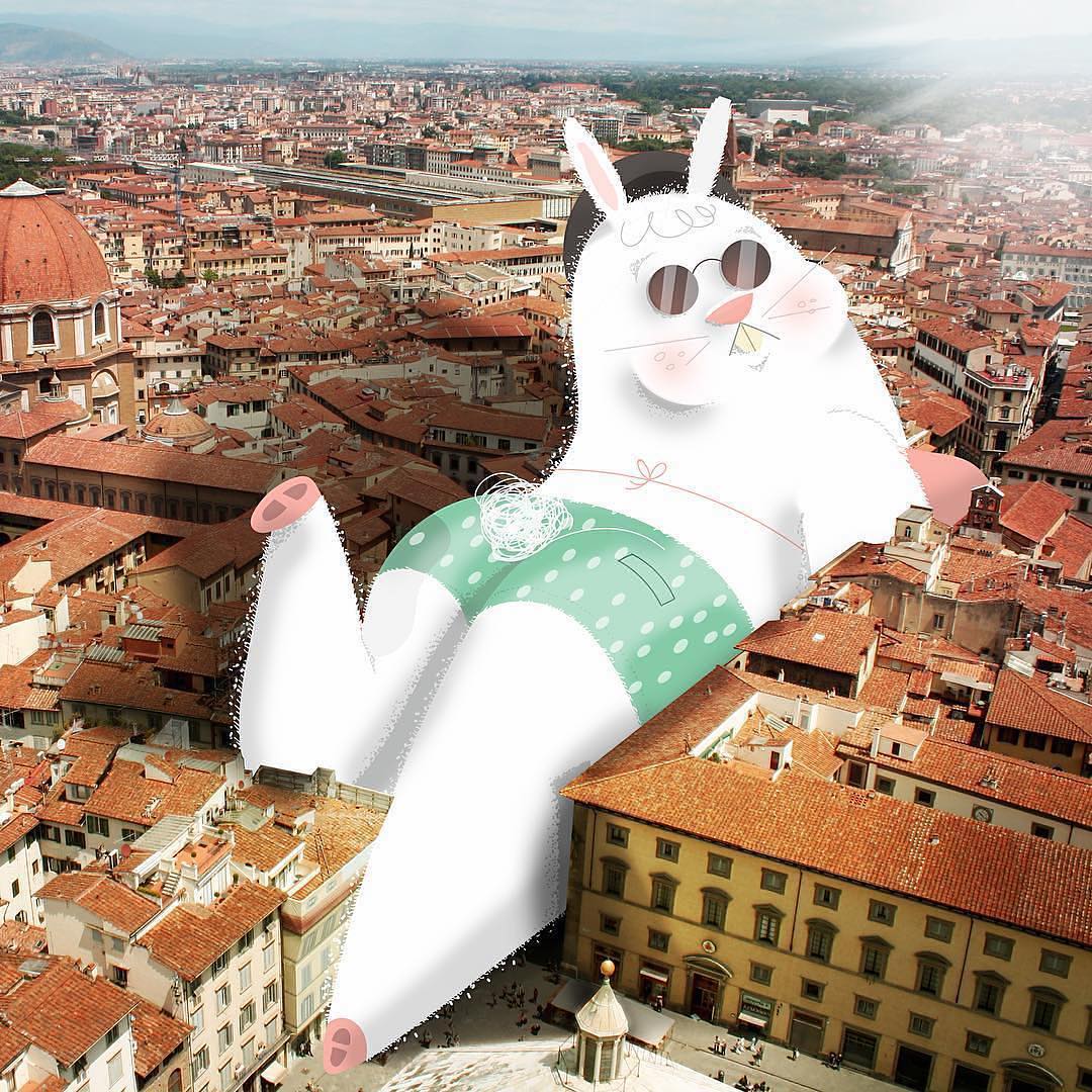 アルゼンチンのイラストレーターHernán Castelli (@hellorayita) さんによれば、世の中には2種類の人間がいるという。ひとつは、挑戦を恐れて変わりばえのしない人生を送る「小さな人」。もうひとつは、押し込められた型を打ち破り、本当になりたい自分をめざす「大きな人」。Hernánさんは、巨大な身体に大きな口の人畜無害な生物を通して、「大きな人」がどこにでもいる世界を思い描いている。 #giantsoftheworld は、その一連の作品につけているハッシュタグだ。「絵柄や雰囲気は子どもっぽくても、差別、社会不安、環境問題など根深く普遍的な社会課題にふれた作品が多いです」身近な問題を題材にしていることが多いせいか、背景にはオーストラリアやアイルランド、ニューヨークの街並みなど、Hernánさんがかつて住んでいた場所が使われている。この巨大生物たちは、私たちが時折感じる気持ちを代弁しているのだとか。「すべての人の中に“大きな人”は存在していて、力を振るってるんだと思います」