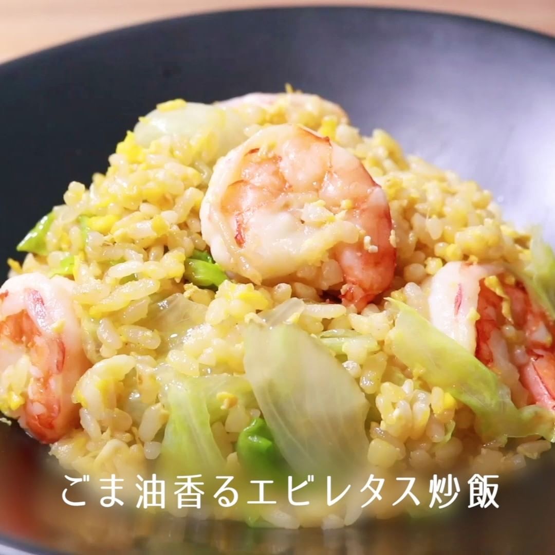 ②ごま油香るエビレタス炒飯