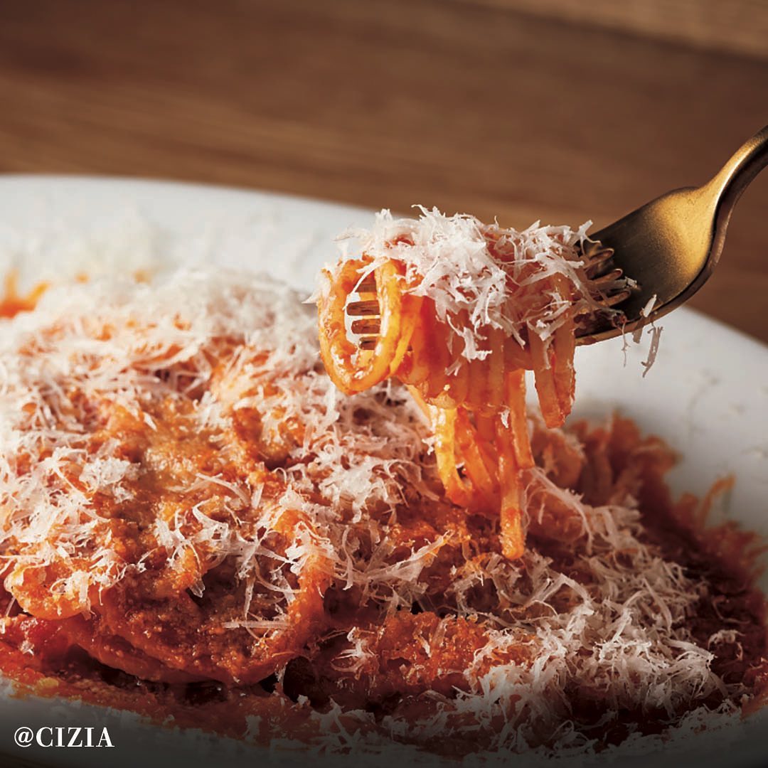 甘酸のバランスが絶妙な自家製トマトソースが、もっちりしたパスタによく絡む。