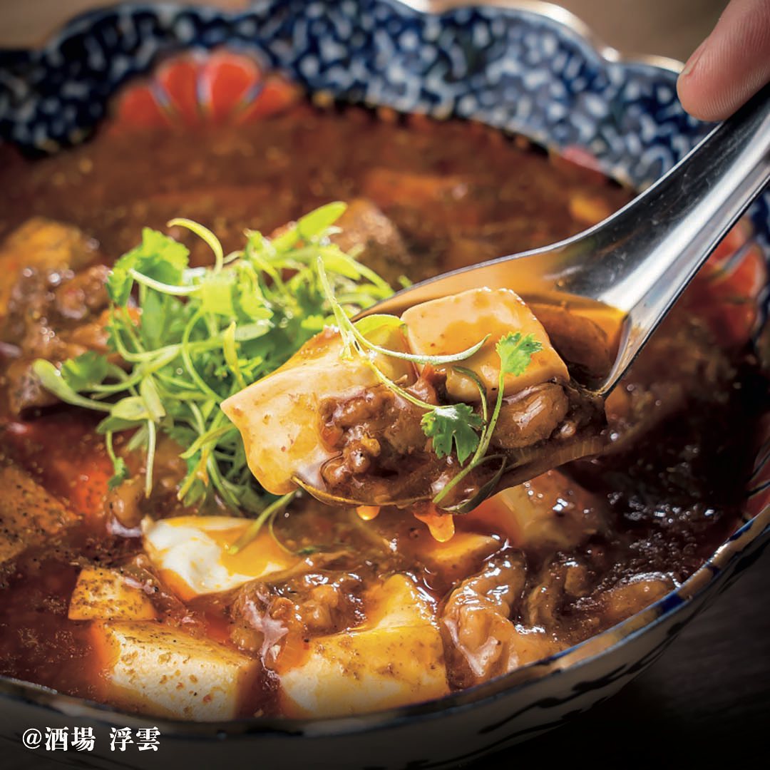 写真③牛スジのフォン・ド・ボーで仕立てた「有田牛すじ肉の麻婆豆腐」。牛だしの甘みと辛みや痺れが後を引く