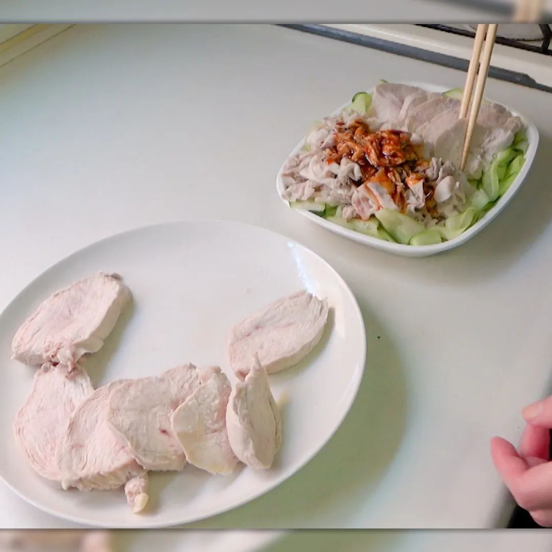 ② 水を適量加えて、鶏ムネ肉1パック分を入れて茹でる