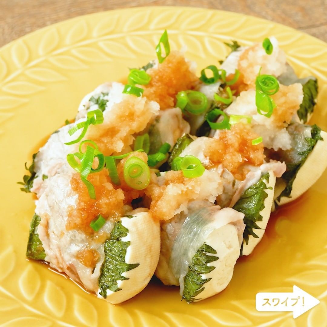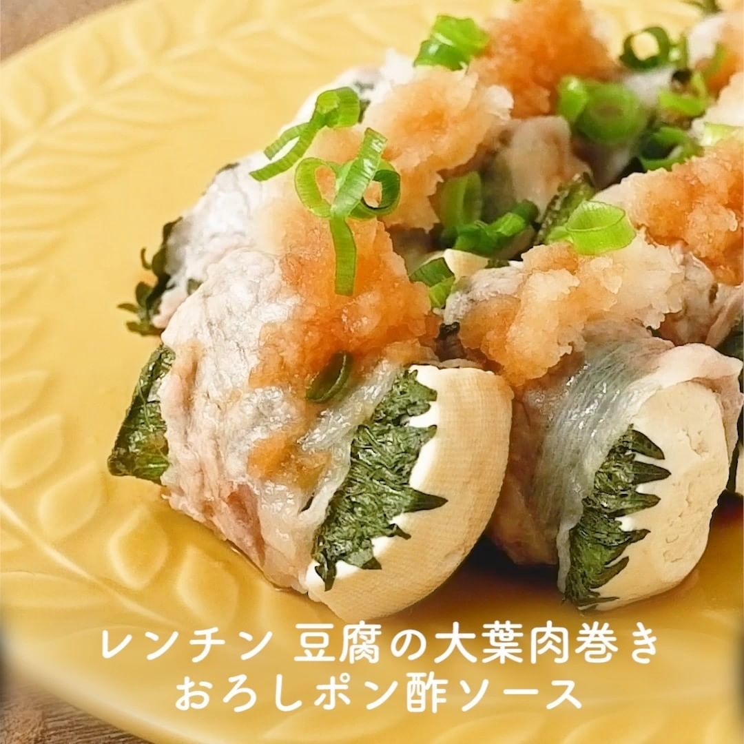④レンチン 豆腐の大葉肉巻きおろしポン酢ソース