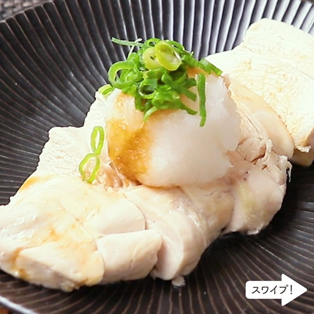 ②電子レンジで簡単 蒸し鶏のおろし梅ポン酢