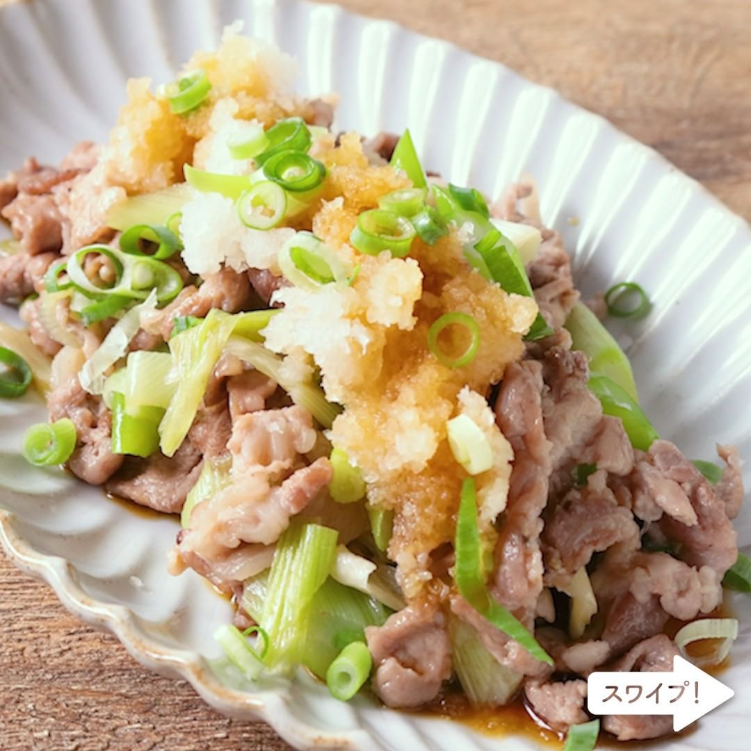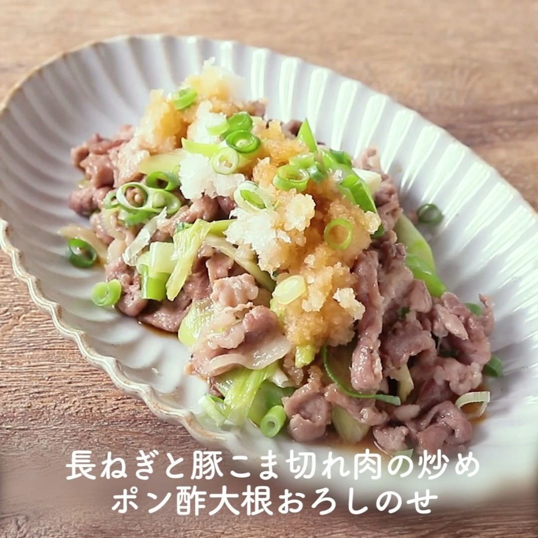 ③長ねぎと豚こま切れ肉の炒め ポン酢大根おろしのせ
