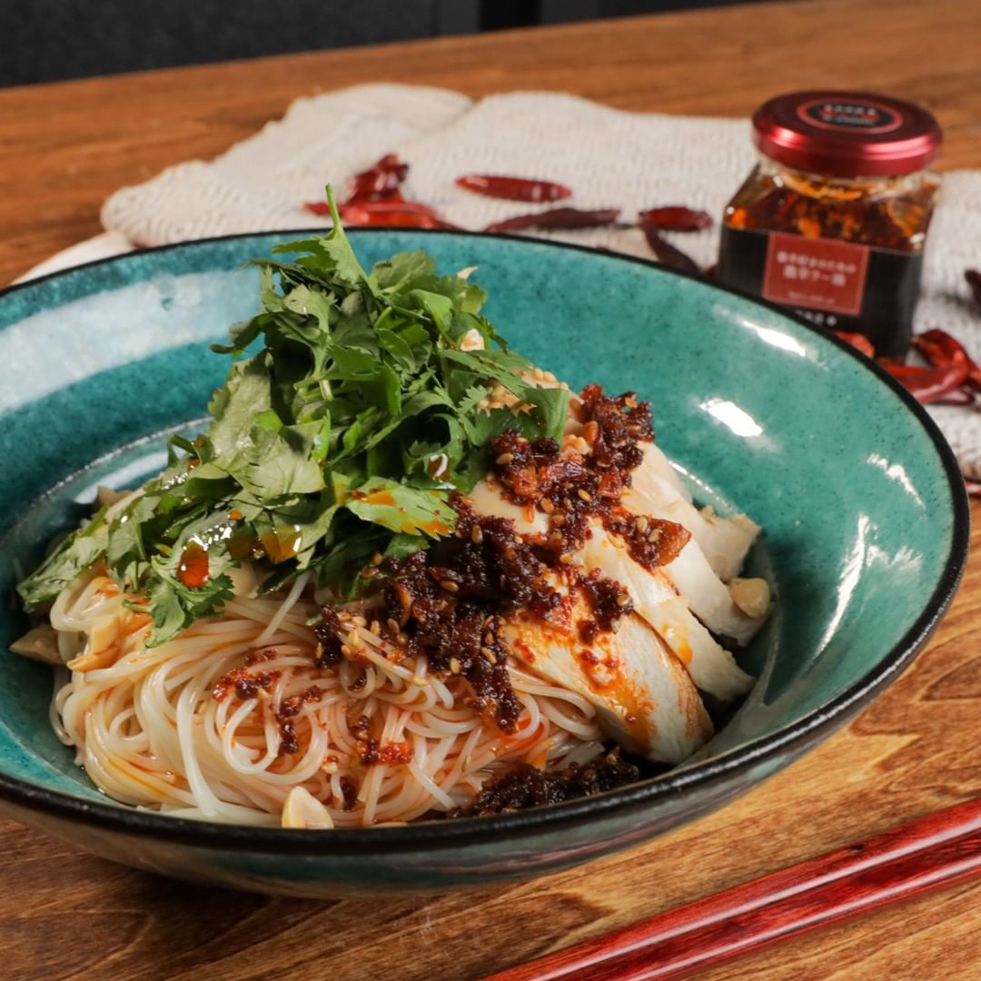 ④白ごま、パクチー、ピーナッツをのせ、仕上げに激辛ラー油をかけたら、完成!