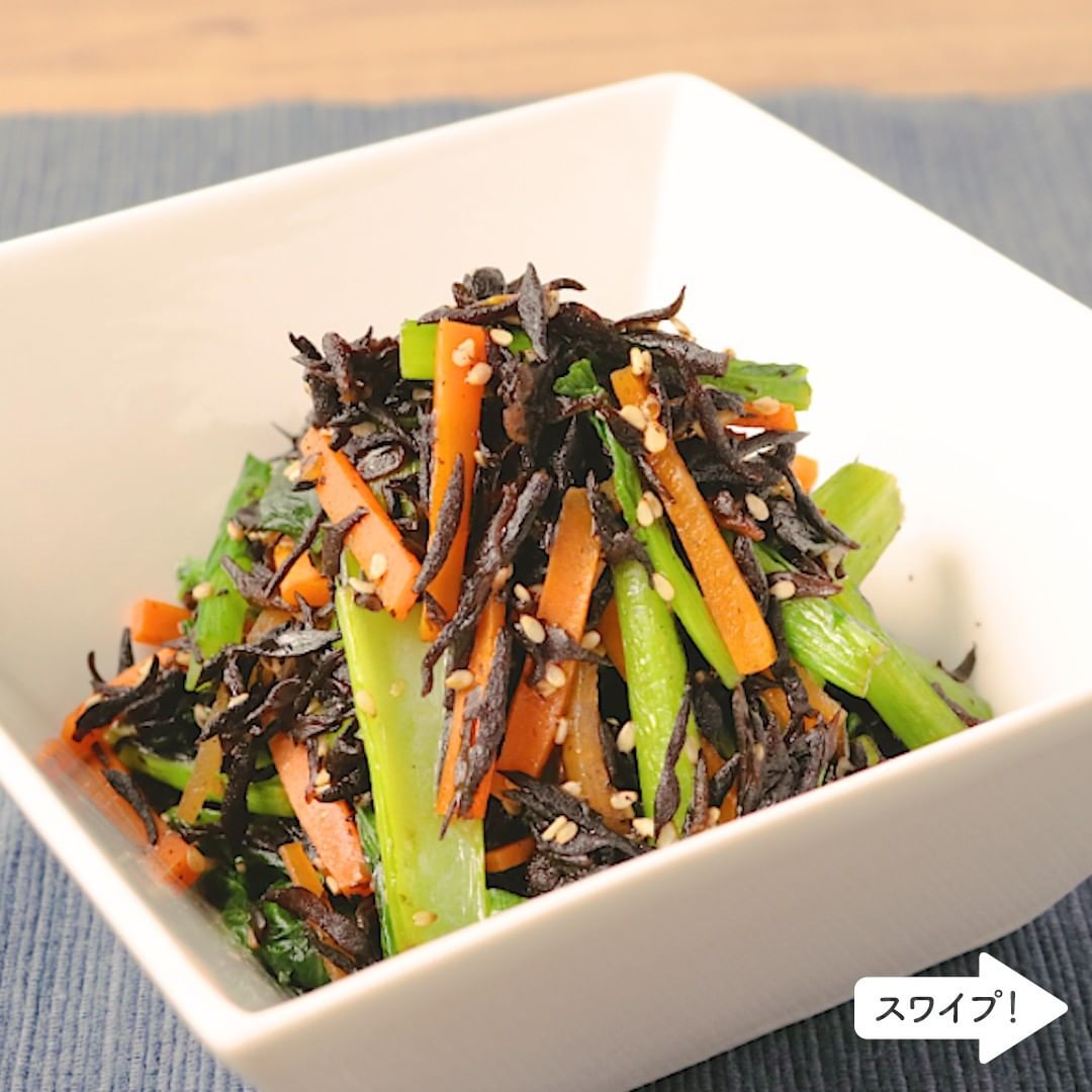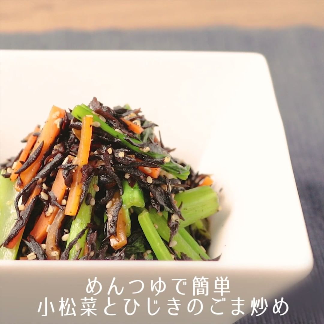 ④めんつゆで簡単 小松菜とひじきのごま炒め