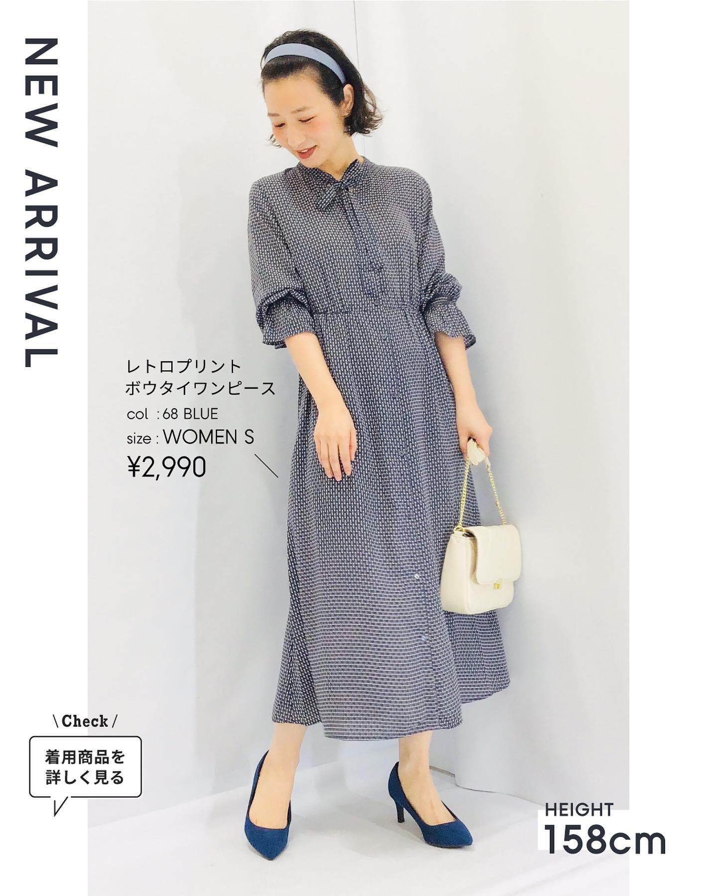 レトロプリントボウタイワンピース(7分袖)