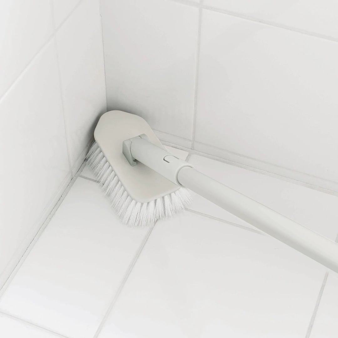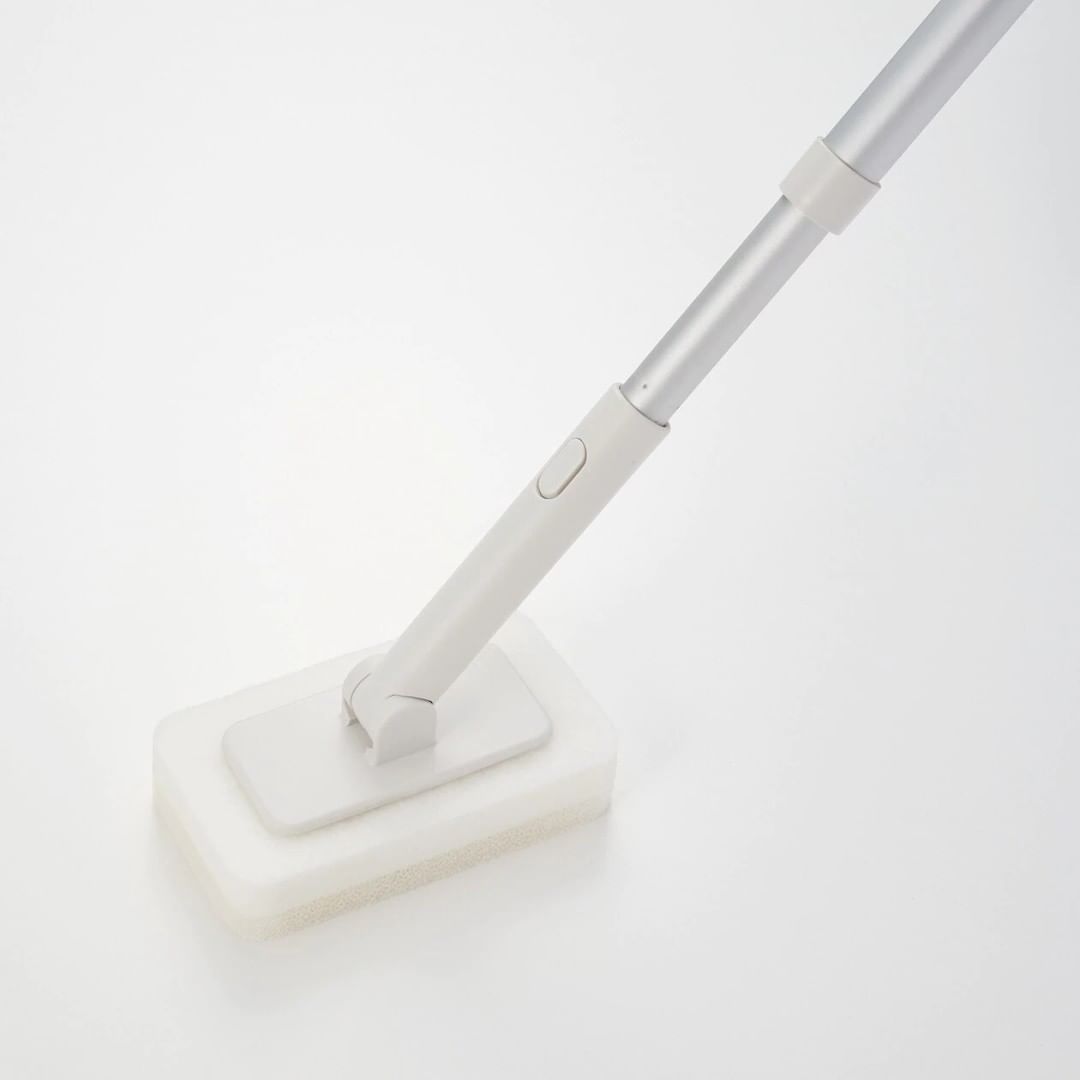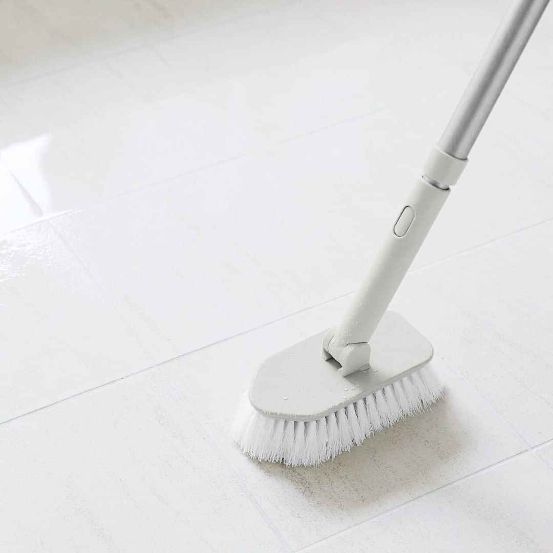 洗い場や床の掃除には、ジョイント部が可動式で狭いスペースでも洗いやすいバス用ブラシ、浴槽の掃除には、スポンジ部分が交換できるバス用スポンジ。壁や鏡の水気取りにはスキージーなど、軽量ショートポールと組み合わせながら、場所や汚れに合わせて道具を使い分けると効果的です。