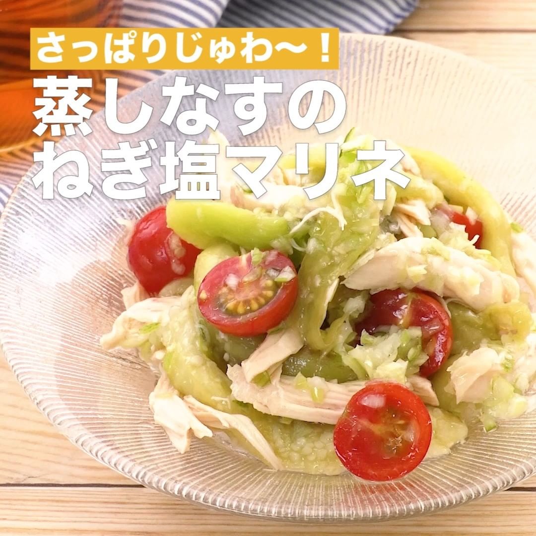 ⑥<さっぱりじゅわ〜!蒸しなすのねぎ塩マリネ>