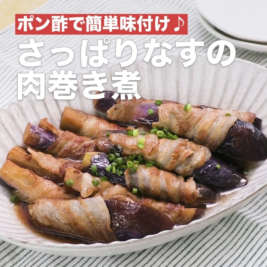 ⑤<ポン酢で簡単味付け♪さっぱりなすの肉巻き煮>