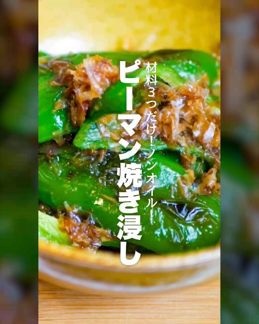 ①【材料3つだけ】ほっとくだけ!ピーマン焼き浸し