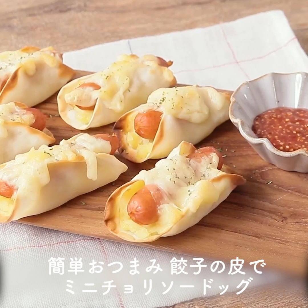 ①簡単おつまみ 餃子の皮でミニチョリソードッグ