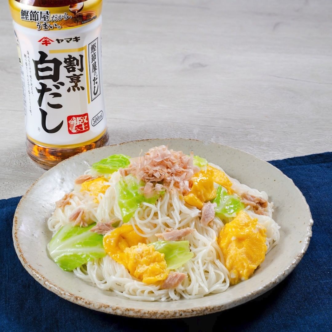 白だしでさっと!ツナとキャベツのそうめんチャンプルー