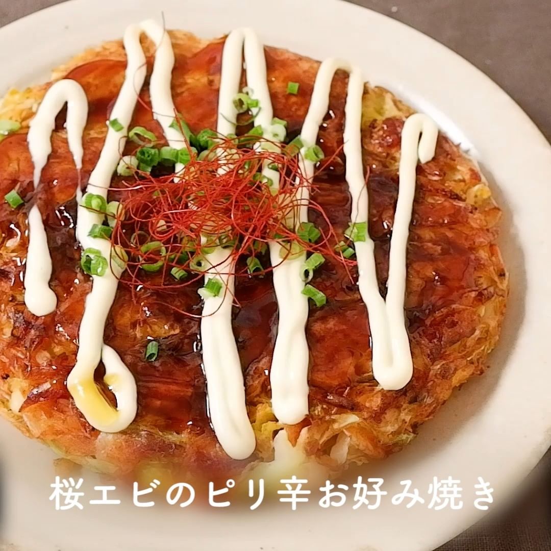 ⑤桜エビのピリ辛お好み焼き