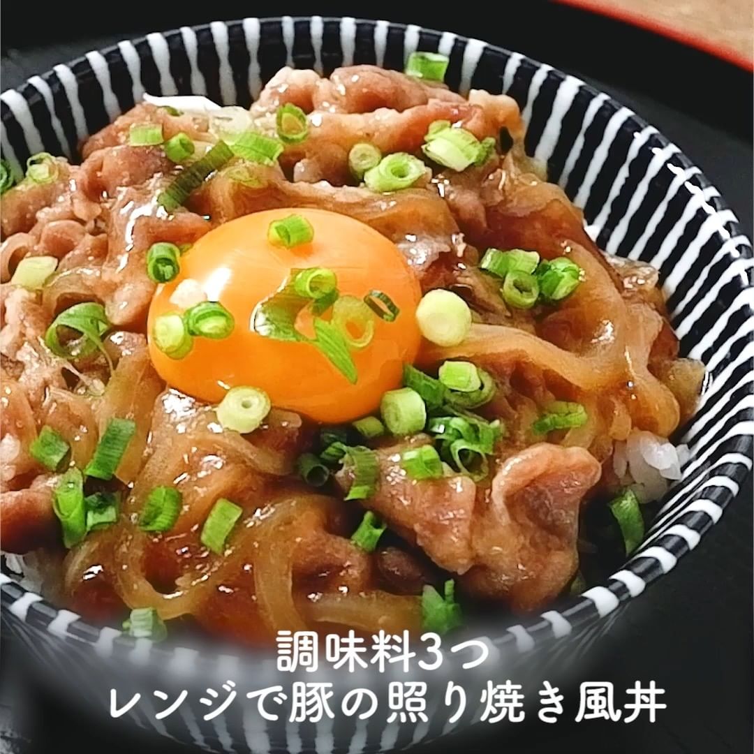 ①調味料3つ レンジで豚の照り焼き風丼