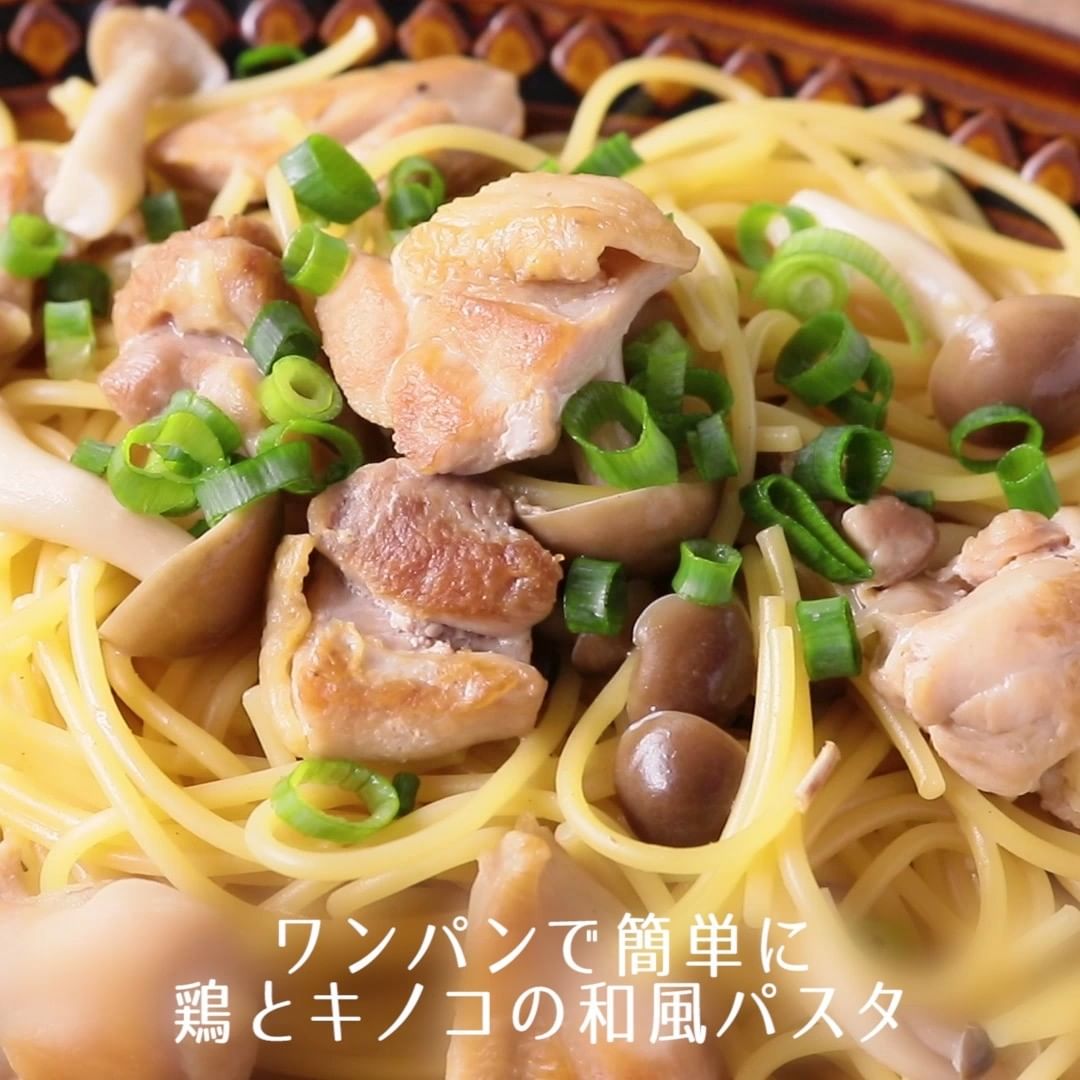②ワンパンで簡単に 鶏とキノコの和風パスタ