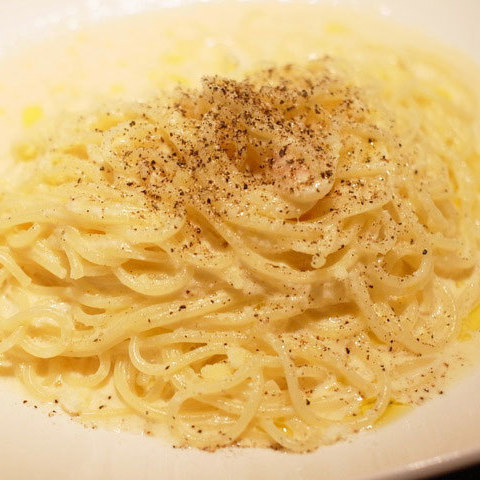 クリームの中にたっぷりと明太子が入った「明太子カルボナーラ」は、生パスタのもちもち食感と、明太子のプチプチとしたアクセントが楽しいです!