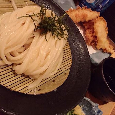 24時まで営業している恵比寿の『こがねうどん酒場』。揚げたての鳥天をほおばりながら、コシのあるうどんをすする。至福のひとときです。