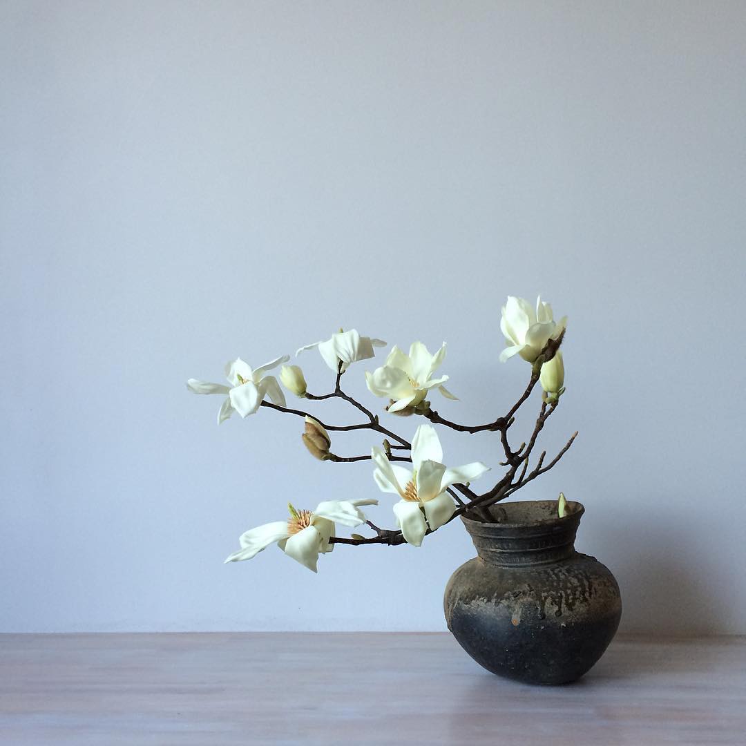 いけばな教室をひらいている越見慎一朗 (@kumo_ikebanalab) さんは、15年ほど前たまたま見たいけばなの本に惹かれ、習い事を経て専門学校を卒業後、働きながら勉強を続けた。「僕のスタイルは歴史的には“投げ入れ花”というジャンルかと思います。作風は“シンプル”ですかね」という越見さんは、自然の花の美しさを壊さないよう、極力、ありのままの姿でいけることを心がけている。「上達するコツは、花をよく見ること、とにかくいけること、美しいものが分かる目を養うことかと思います」そんな越見さんの夢は、初期の茶人が感じていた日本の美を真に会得し、これからの時代に残すことだという。「写真を通して、花や器、いけ方で、日本の美の素晴らしさをお伝えできればと思います」