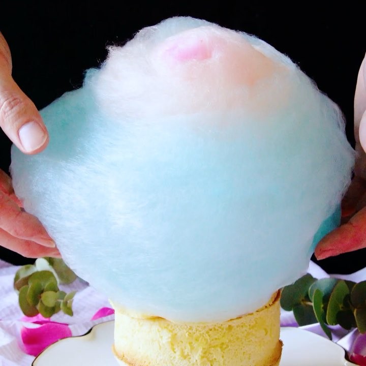 1. 綿菓子マシーンに色付きザラメをセットして層になるように綿菓子を作る。⠀