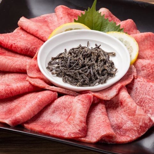 『焼肉 ますお』で、まずオーダーしたい「ますお・極タン」。タンの中で一番脂がのっている”タン中”が使用されている。ジュージューと焼けていく福音がなんとも心地いい。