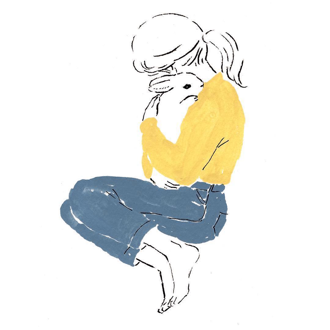 イラストレーターの森山標子 (@schinako) さんの作品には、必ずといっていいほど、うさぎが描かれている。「一緒に暮らした経験があるのはうさぎだけなんです。だから、うさぎを描けなければ他の動物も描けっこないと思って毎日うさぎを描いていたら、うさぎ飼いのフォロワーさんが増えて、期待に応えるべく、うさぎばかり描くようになりました」そんな彼女のイラストには子うさぎが登場しない。「人間でも動物でも、本当に面白くてたくましくて美しいのは大人だと思っているのです。大人っていいよねって伝えたいなって思っています」うさぎと暮らす普段の生活から、イラストのモチーフを切り取っているという森山さん。「絵を見て、ここに描かれているのは自分みたいだって思ってもらえるのが一番うれしいです。何気ない日常を描きながら、どんな人も、みんなそれぞれの人生の物語の主人公だっていう気持ちで描いています」