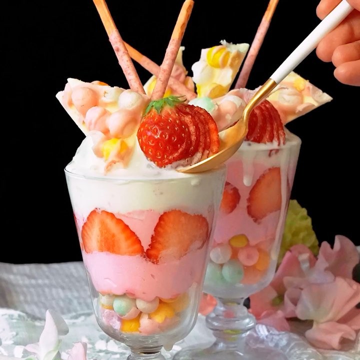 【ゆめかわ🦄】おいりチョコクランチパフェ⠀