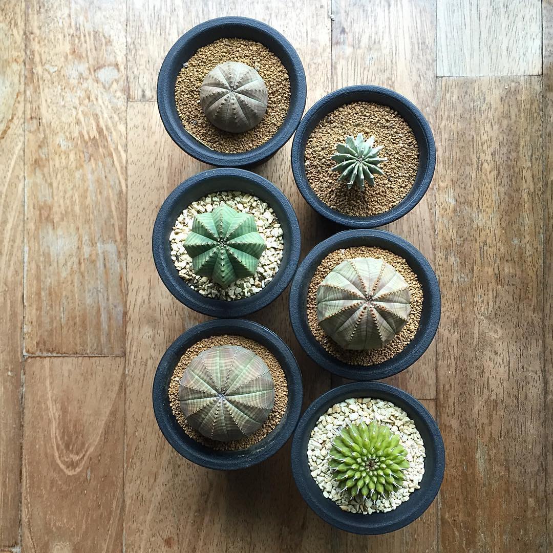 自宅で150鉢ほどの植物を育てている梅澤 (@umemichi77) さん。そのコレクションの始まりは、グリーンフェアで買った多肉植物と、ハッシュタグ #サボ一号 をつけてよくシェアする “サボテン1号” 。“サボテン1号” は、いまだに彼女のお気に入りの一つだ。「それまで、ほとんど植物を育てたこともなく、サボテンの花など全く見たこともなかったのですが、サボテン1号の大きな白い花には驚かされました」多様な形と、ゆっくりじわじわと成長していく様子が多肉植物の魅力。「植物の種類によって成長時期が異なるので、その時々で変化のある『動きだした』という表現がなんとなくしっくりくるような成長に気づいた時に、その植物の写真を撮っています」