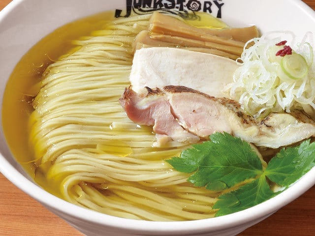 大阪『らーめんstyle JUNK STORY』の「〜地鶏とハマグリの極上出汁〜 煌めきの塩そば」。こちらは、新宿・大久保公園にて絶賛開催中の「大つけ麺博」でも楽しむことができる。