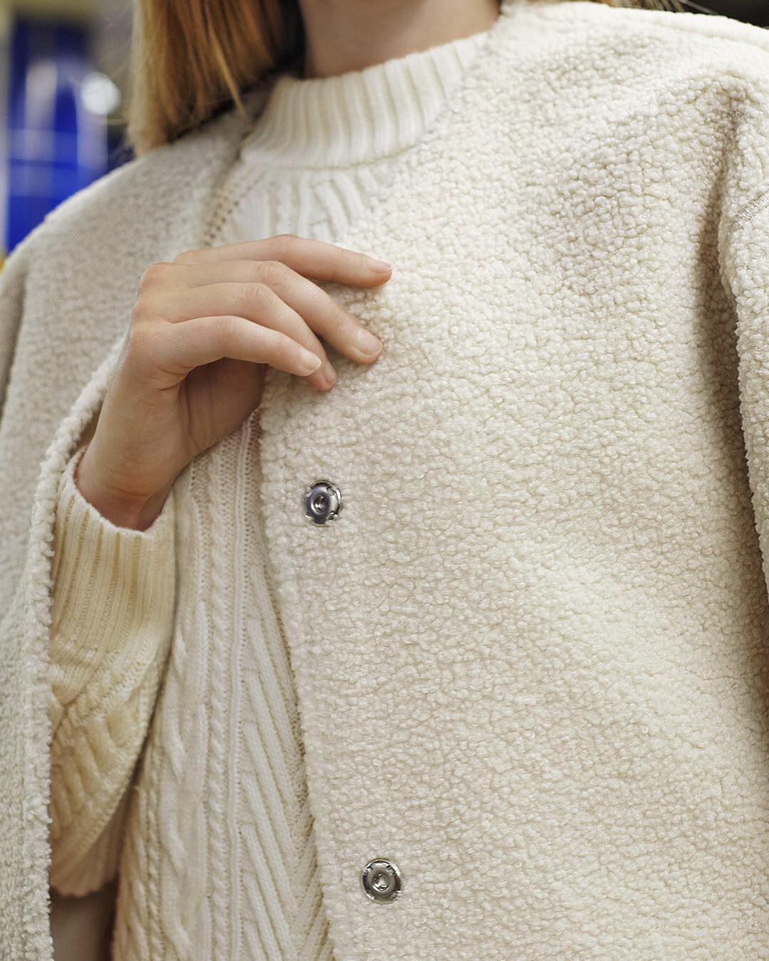 Short-haired, collarless fleece with a refined look.
