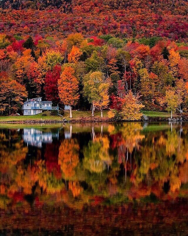 #fall #autumn #vermont #indiansummer #colourful #leaves #brown #red #yellow #green #reflection #reflectiongram