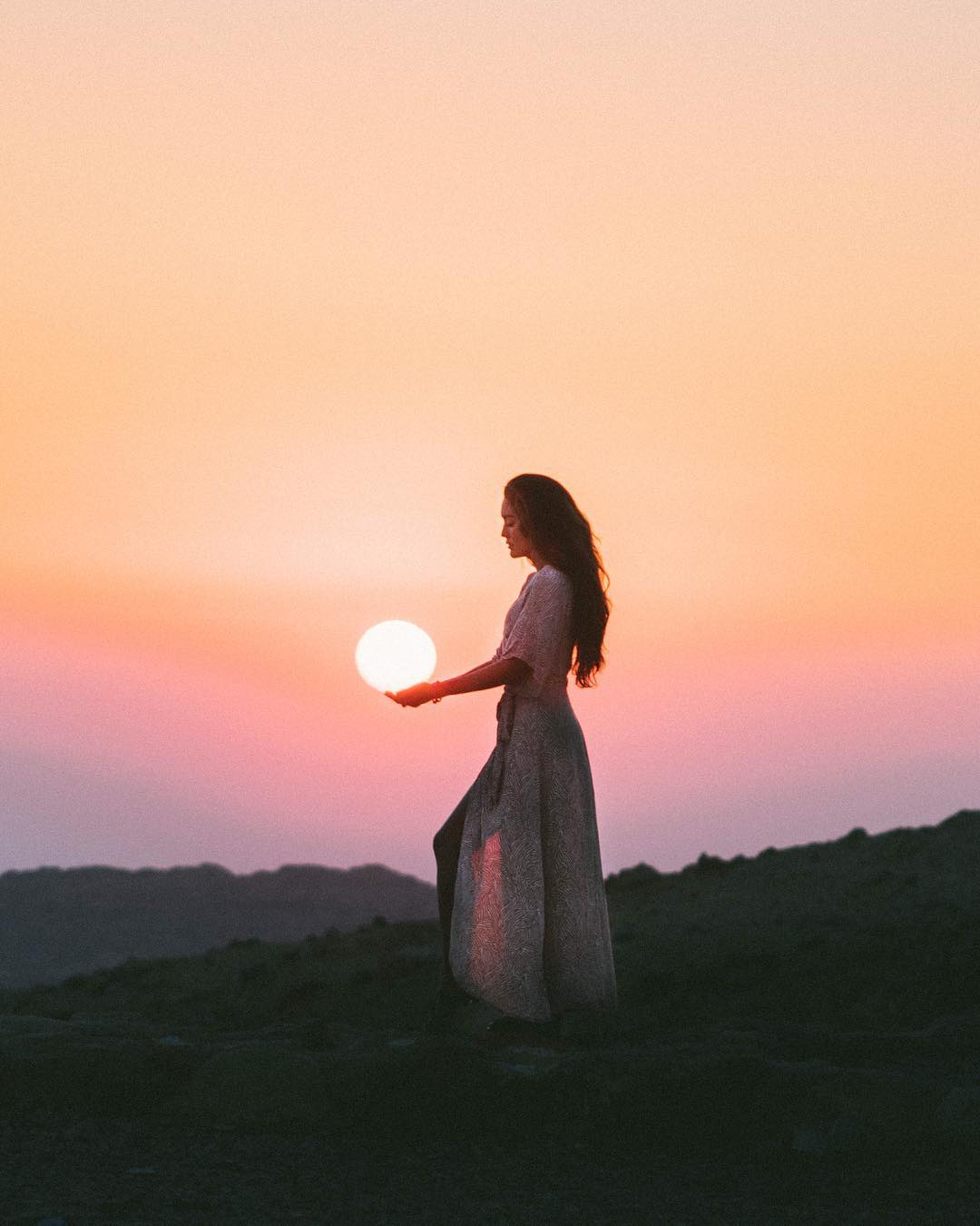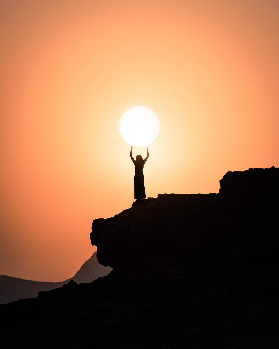 The theme for this month’s photo #sponsored by #Canon was forced perspective 🙂 I knew I wanted to try something in Jordan with its hazy muted skies that make the sun appear as a perfect ball on the horizon. These types of images take a few tries to get right (and walkie talkies help) but I love how focal length can change the perception of size or distance. In the first image I’m much closer to camera and it’s shot at 110mm. In the second shot I’m much further away and shot at 300mm making my relationship to the sun so much more dramatic.