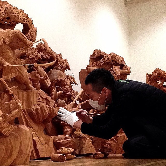 山本陽介 (@yosuke.horiyo) さんは子どもの頃に生涯を捧げる夢を見つけていた。地元大阪の秋の風物詩である地車(だんじり)祭を見て育った彼は、幼いながらに地車の木装飾に魅了され、いつしか彫刻家を目指すようになった。「中学生の頃から家で彫刻刀を握っていました。彫刻家になりたいという想いは強くなるばかりで、高校卒業と同時に、師匠に弟子入りさせて頂きました」10年間の修業を経て独立した彼は、今では2人の弟子とともに日々木材と向き合っている。大小さまざまな作品を手掛ける中でも、2年以上かけて作り上げる地車には特別な思いがある。「地車制作は100年、200年と残る仕事ですから、山本陽介にしかできない作品を追求し、幼少期に見たような魂の塊のような作品を残せれるよう、鑿(のみ)を振るいたいと思います」