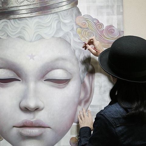 「絵が友だちにウケた」東京で現代美術家として活動する上野陽介 (@yosuke_ueno) さんが絵を描き続けてきた原点は、子どもの頃のそんな思い出だ。彼が描くのは、大きな頭に陶器のような白い肌、またときには花や月の頭をしたキャラクターなど、どことなくリアリティを感じさせる空想の人物たち。身近な人や物を作品作りの参考にすると同時に、趣味の科学からも大きなインスピレーションを得ているという。「芸術家は科学者に似ていると思うんです。つまり、自分の想像を超えたものを作りたいという芸術家の精神と、実験を模索して新たな地平を切り開く行為はとてもよく似ています」ポップシュルリアリズムと呼ばれることもある作風だが、そうした専門的な評価にはあまり興味はない。「僕の初期衝動は友だちを喜ばせることだったので、なるべくポジティブなエネルギーに満ちた作品を作りたいです」
