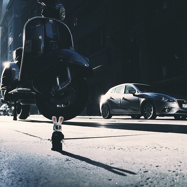 遊びの時間は子供だけのものではない。Kanesan Nathan (@legojacker) さんは、3年半前にオーストラリアのメルボルンに越してきて以来、日常風景のなかで撮影したレゴ人形の写真を投稿し続けている。「戸外の遊びを、あえて遊びとは縁遠い場所で行うことで、この街の概念をあらためて解釈しなおしているんだ」スクーターと車が停まっている無人の道路は、小さなウサギのフィギュアが影を落とすステージに。ストリートアートで有名なホージアレーンは、色鮮やかなプラスチックのロードローラーが進むランウェイに。マーケティング専門家として働くかたわら、こうした反射、ストリートアート、屋上、都市の光景を探し、レゴ人形がまるで実物大に思えてきそうな写真を撮る。デジタル処理は、コンセプト上必要なときだけ使うと決めている。