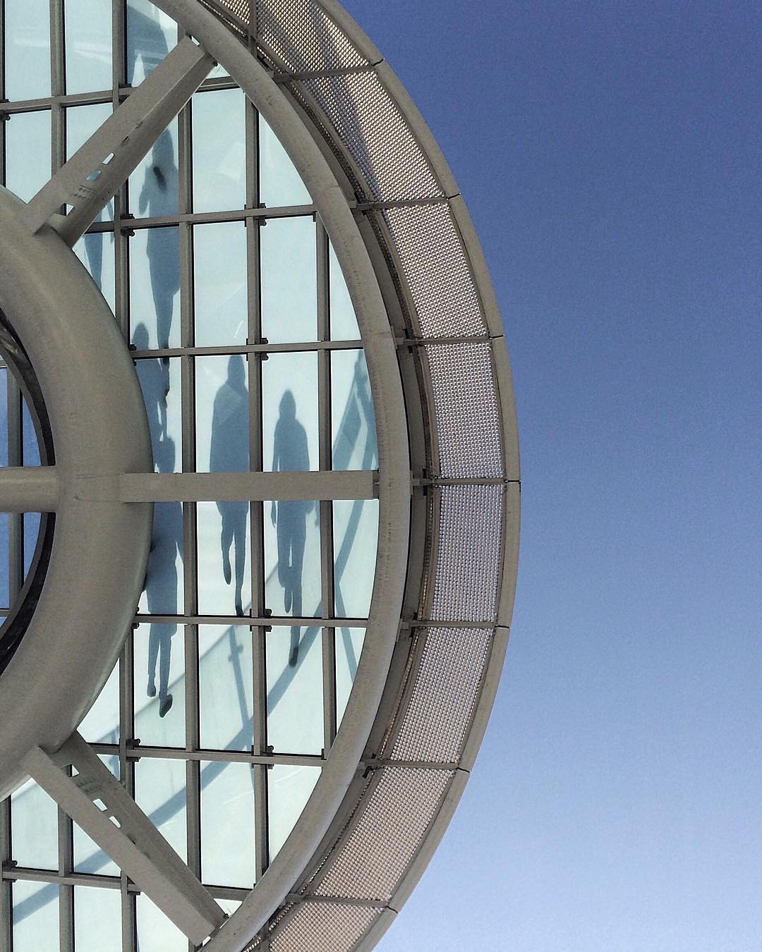 「名古屋の中心にそびえ立つ『水の宇宙船』オアシス21。真下からガラス張りの天井を歩く人々の影を撮ってみました。ちょっと宇宙人みたいでしょ」 — JHPマンスリーセレクトNo.3: @con4y