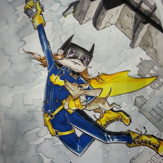 Beth Sotelo (@midimew) さんの作品に一貫するテーマは、無敵のスーパーヒロイン。アメリカ・カリフォルニア州出身のコミック・アーティストで、DCやAspen Comicsで色付けを担当しているBethさんは、仕事ではそんなスーパーヒロインを目指している。今の彼女があるのは、高校時代の先生のおかげでもある。「芸術って単なるお遊びだと思ってて、単位を落とすところだったの。でも当時芸術を担当してたLee Samuels先生が私の家まで電話をかけてきて、授業に出るように説得してくれたの。それ以来、アートはスキルとしてやり続ける価値のあるものだってことを学んだのよ」カラー作品には自作のデスクトップPCと古いバージョンのPhotoshopを使用し、鉛筆書きのときには中密度のファイバーボードとバインダークリップを用いる。「長イスに座って、ひざの上にボードを置いて、シャーペンを持つの。隣にはいつも愛犬の『マスタード大佐』が座ってるわ」