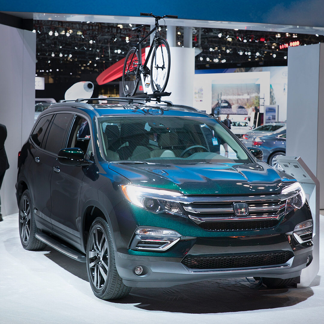 The #NYIAS features all kinds of amazing Honda vehicles that would be great to use for your next adventure—like the Pilot with a Honda Genuine Accessories bike roof attachment, the HR-V, CR-V or Ridgeline.
