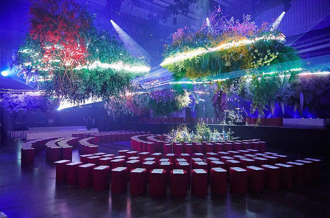 The set of the KENZO Men and Women’s Spring-Summer 2019 show featured a suspended garden by @nue.paris at La Maison de la Mutualité. See more on Instagram stories. #KENZOSS19
