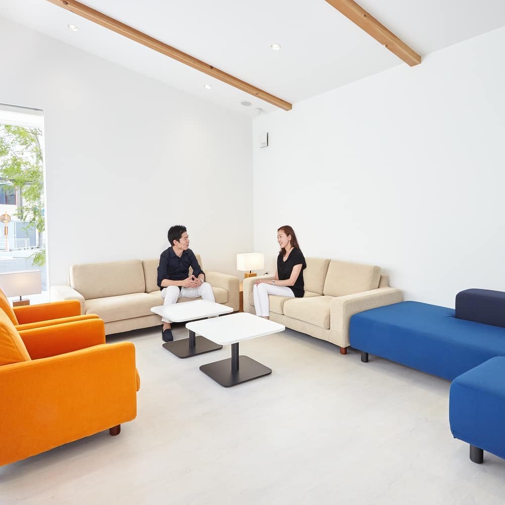 3Dシミュレーターを使い、待合室のソファのレイアウトやサイズなどを決めていきました。立体で見ることでイメージの確認ができ、完成がより楽しみになったそうです。また、ハイスツールをお探しだったので、IDÉEのチェアをご提案しました。大きな窓と白が基調の空間に、差色としてビビッドなカラーやトーネットのチェアの曲線がとても映える素敵な空間になりました。