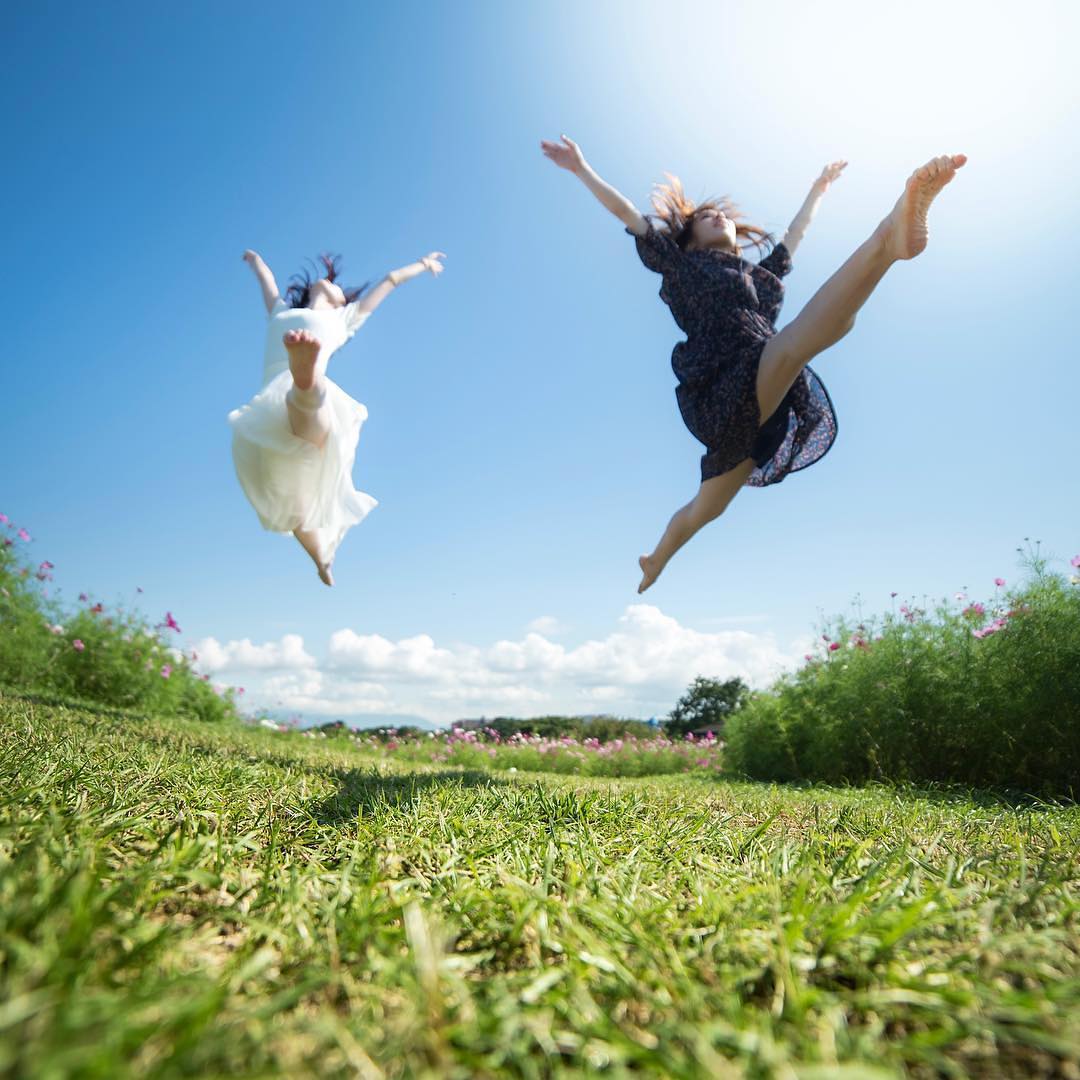 #土曜日の小旅行 — 今週は福岡県にある国営海の中道海浜公園に小旅行。 年間を通して、四季折々の花の表情を広大な敷地で楽しむことができる。コスモスの咲く時期にこの場所を訪れたHiroya (@hiro_photograph_) さん。被写体のお二人はプロのダンサーで、大空に向けてピンと伸びる手足が、まるで宙に浮かぶ人形のよう。