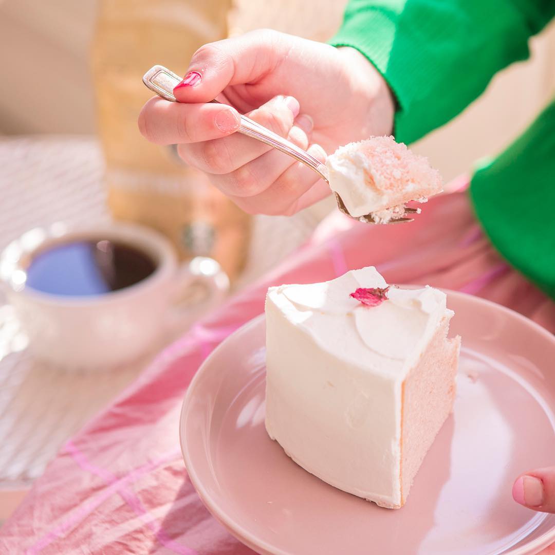 塩漬けのさくらの花びらがちょこんとのったシフォンケーキ🌸