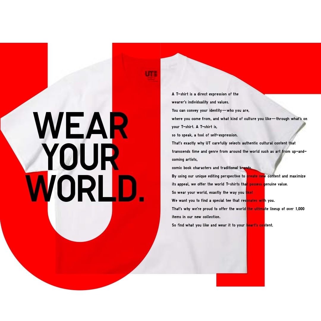 “A T-shirt is a direct expression of the wearer’s individuality and values. You can convey your identity – who you are, where you come from, and what kind of culture you like through what’s on your T-shirt. A T-shirt is, so to speak, a tool of self-expression. That’s exactly why UT carefully selects authentic cultural content that transcends time and genre from around the world such as art from up-and-coming artists, comic book characters and traditional brands. By using our unique editing perspective to create new content and maximize its appeal, we offer the world T-shirts that possess genuine value. So wear your world, exactly the way you like! We want you to find a special tee that resonates with you. That’s why we’re proud to offer the world the ultimate lineup of over 1,000 items in our new collection. So find what you like and wear it to your heart’s content.”