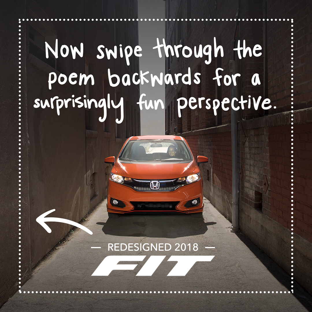 @Honda @Honda: The Fit Sport is full of surprises, and so is this poem. Reach the end to find t… 2017-11-03 The Fit Sport is full of surprises, and so is this poem. Reach the end to find them. Ciao, Nihon.