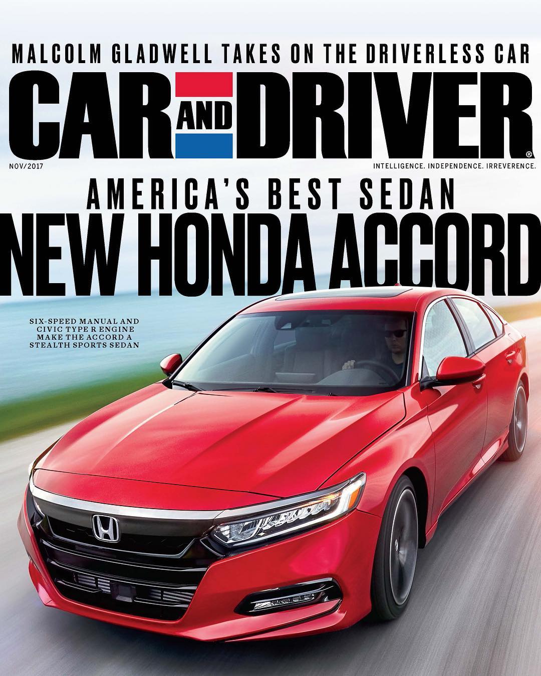 @Honda @Honda: We are beyond excited that @caranddriver has proclaimed the 2018 Accord “America… 2017-10-13 We are beyond excited that @caranddriver has proclaimed the 2018 Accord “America’s Best Sedan” on their November cover. Ciao, Nihon.