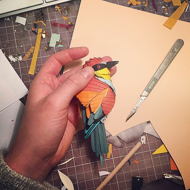 「キャラクターのあるものを作るのが好きです。例えばオウムとか。」そう語るのは、スウェーデン・ウプサラに住むFideli Sundqvist (@fidelisundqvist) さん。主にペーパーアーティストとして活動する彼女は、イメージ作品のセットや小道具、そして立体オブジェを制作している。Fideliさんが手がける作品は、広告や都市プロジェクトのビジュアルなど幅広く起用されていて、彼女はその制作風景を写真や動画にしてシェアしている。オウムを作るには、まずインターネットで参考イメージを探し、色紙にパーツを下描きしてからデザインカッターでそれらを切り抜いていく。次に羽根となる部分に細かい切り込みを入れ、両面テープで土台に貼り付ける。仕上げに爪、目、翼といったディテールを加え、一つの作品が完成する。「私は、皆んなの心の中にある子供の部分を目覚めさせ、その存在が忘れてしまわれないようにしたいのです」と話すFideliさん。「そうした方が、人生がより面白くて楽しいものになると思います。私の作品を通して、少しでも多くの人がインスパイアされたり、一瞬でも空想の世界に浸ってくれたりしたら嬉しいです。」 Photo by @fidelisundqvist