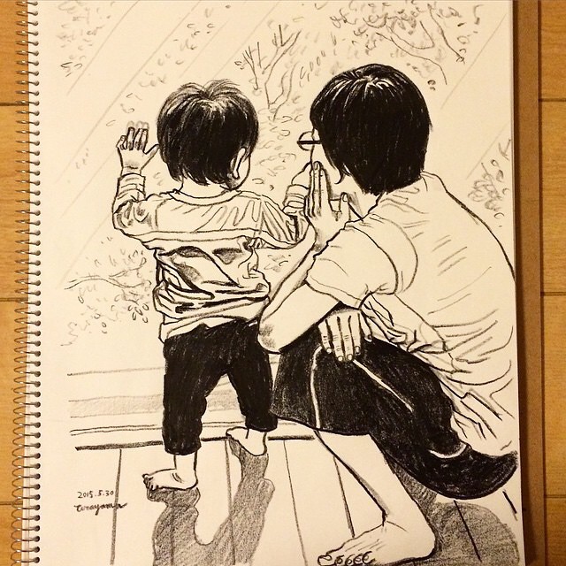 「仕事で日常的にたくさんの絵を描いていると、改めて絵を練習することなんてまずないのですが、でも必要性は感じていました。」そう語るのは、福岡でイラストレーターとして活動している寺山武士 (@takeshiterayama) さん。毎日スケッチを続けている知人のイラストレーターに触発された寺山さんは、同様にデッサンを日々の習慣とするようになった。Instagramで作品をシェアすることは、三日坊主にならないための対策だと言う。毎晩夕食を済ませると、寺山さんは黒のダーマトグラフを片手に、クロッキーブックと向き合う。早いときは5分、じっくりと時間をかけるときは2時間ほどを費やし、その日の気分で選んだモチーフを描き上げる。「テーマは特にありません。ただ、モデル撮影された写真など、誰かがディレクションしたものは描いてもつまらないので、自分で撮った写真やドキュメント映像の何気ないシーンから選ぶことが多いです」と話す寺山さん。どうしてもモチーフ選びに困ったときは、幼い息子が最高のモデルを務めてくれるそうだ。「スケッチはどこまで続くかわかりませんが、描き続けた先に何があるのか知りたいので、しばらくは続けたいと思っています。」 Photo by @takeshiterayama