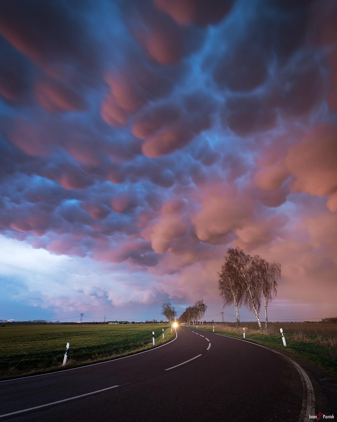 #storms #thunderstorm #lightning #mammatus #road #canon_photos #sunset