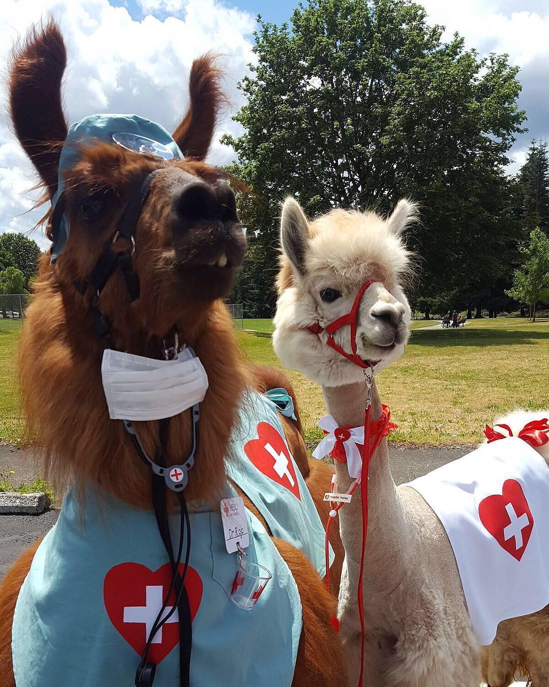 アメリカの北西部で、Shannon Joyさんは、母親のLoriさんと一緒にセラピーラマの小さな群れを飼育している。Shannonさん曰く「ラマというより犬みたい」なRojo (@rojothellama) は15歳、181キロのセラピーラマ。「たいていのラマは警戒心が強いんだけど、Rojoはこの通りよ。彼は自分が大きいことを分かっていて、人前ではじっとして、長い首を使って食べ物をおねだりするの」Shannonさんがまだ子どもの頃、家族とともにワシントン州の田舎に移住した。母親が「かわいい芝刈り機」を探していた時にラマに出会ってすっかり虜になってしまったんだそう。ある日、Rojoと障碍のある子どもの触れ合いを見て心を動かされたことがきっかけとなり、LoriさんとShannonさんは、Rojoと一緒に資格を取得。2007年から、Rojoはセラピーラマとして活動を始めた。今では「マウンテンピークスセラピーラマ&アルパカ」は、クスッと笑ってしまうような衣装を着たRojoとその仲間たちを連れ、追悼式や結婚式、介護施設から大学のキャンパスまであらゆる場所に癒しと笑顔を提供している。「反応はいつも期待通りです。笑わずにはいられないのよ。ラマは犬や猫と違って珍しいでしょう。ラマは、好奇心と幸せをもたらしてくれるわ」